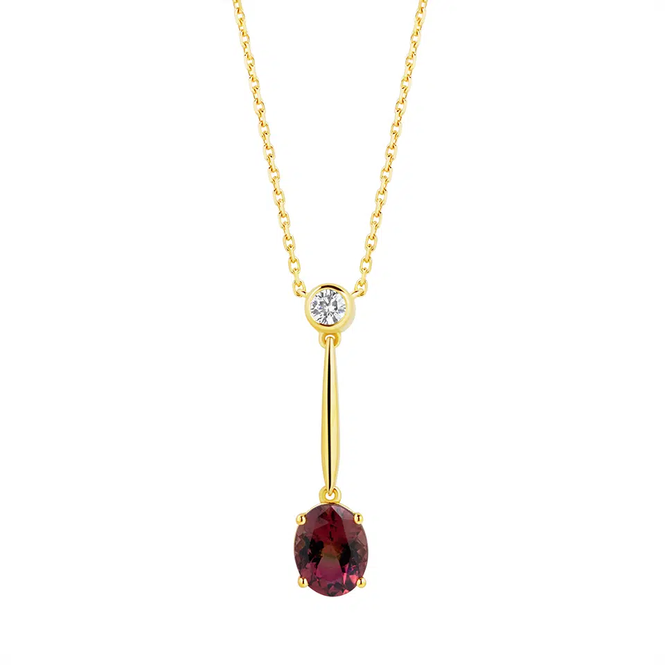 The Exolia necklace is a refined jewel that celebrates harmony and balance. An oval tourmaline of deep, captivating color is suspended delicately beneath a brilliant diamond, creating a timeless dialogue between light and intensity. Elegant and modern, it brings sophistication to every look