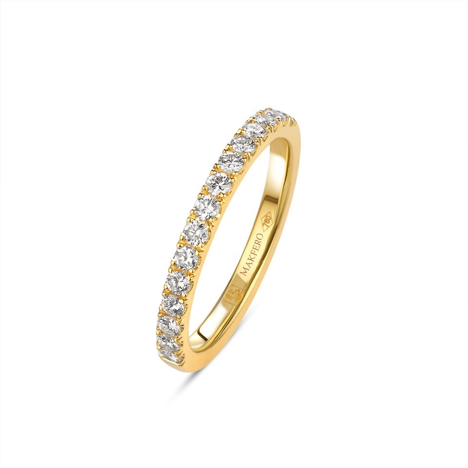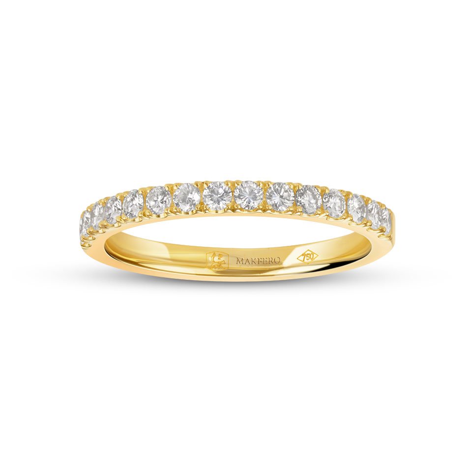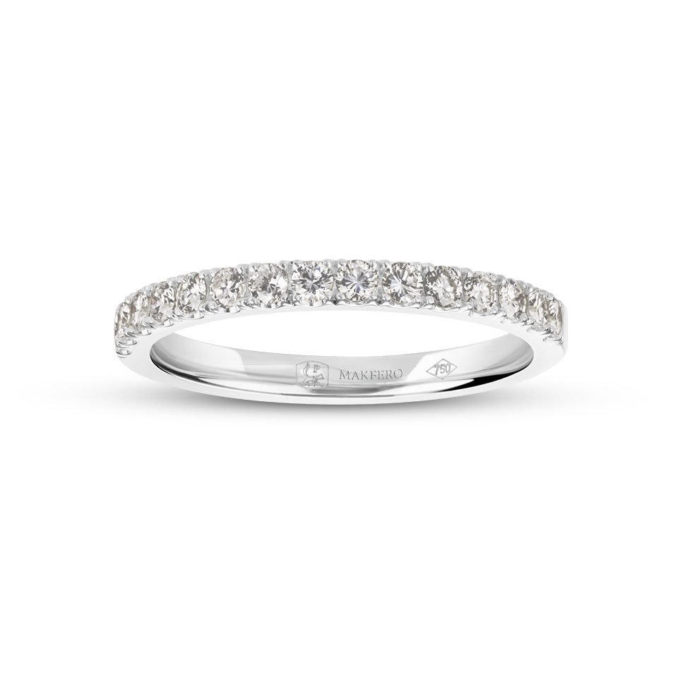 The Tara ring radiates understated brilliance, a delicate band adorned with perfectly aligned diamonds. Its harmonious sparkle symbolizes balance, unity, and timeless elegance